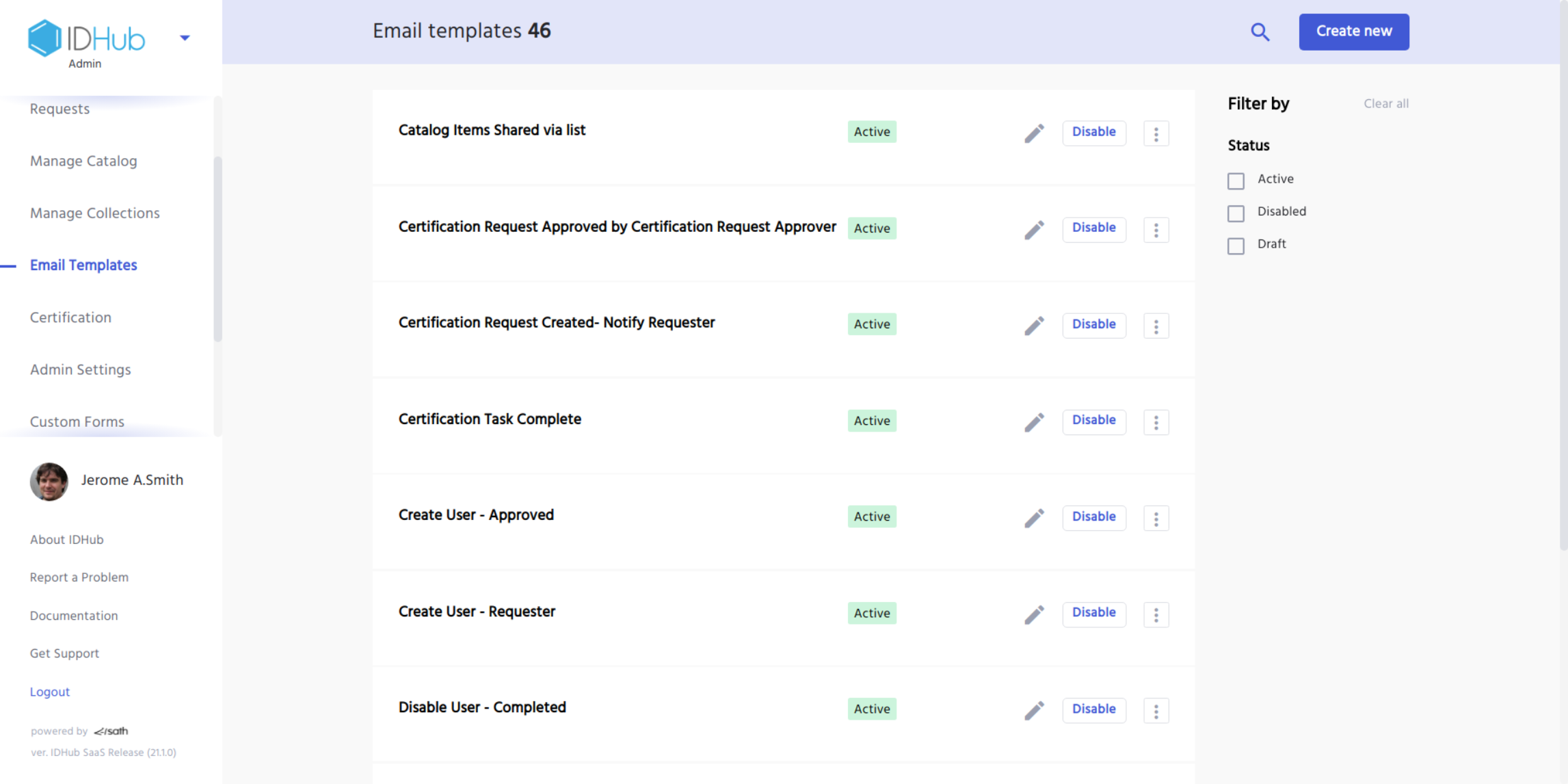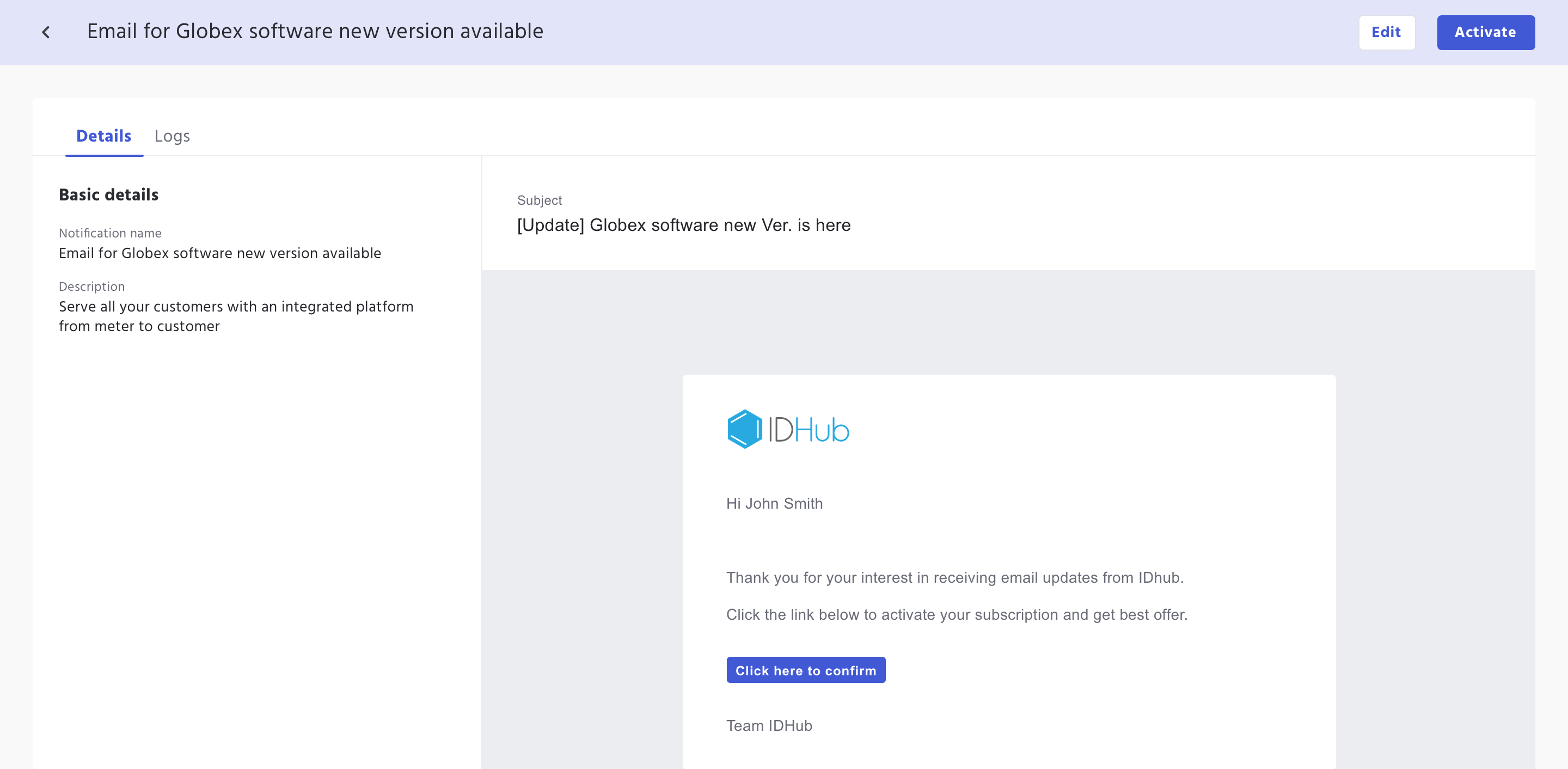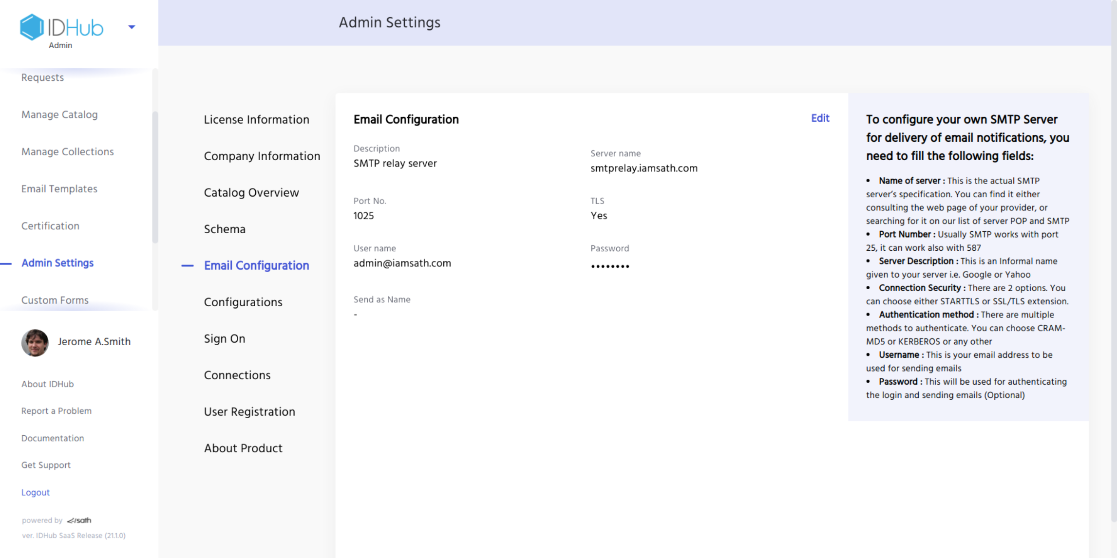 IDHub allows you to setup your SMTP email, create your own email template and managing the existing email templates.