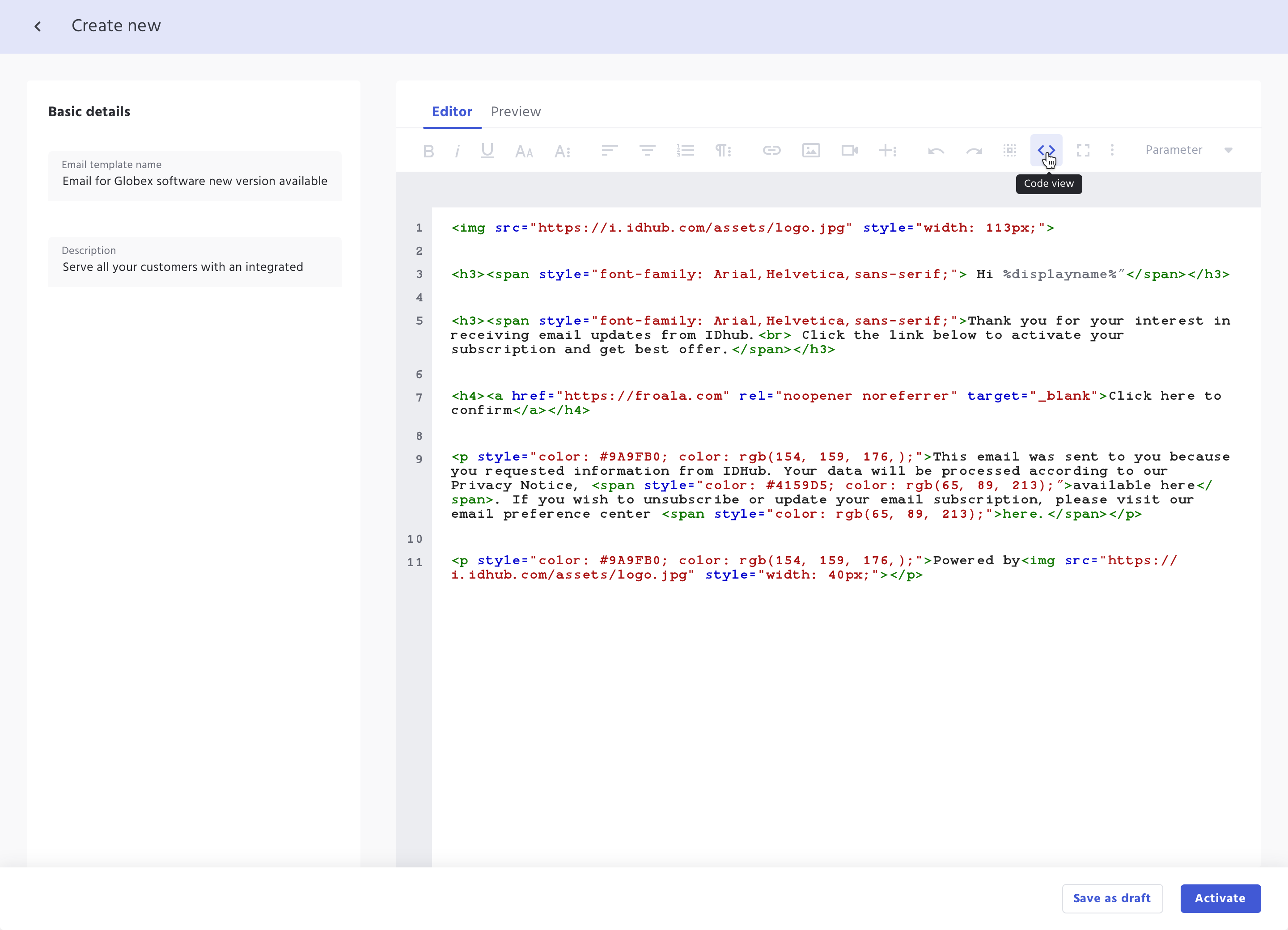 If you want to save the email template for later editing, then you can click on the “Save As Draft" button, IDHub will save that email template as a draft which you can later edit and finalize.