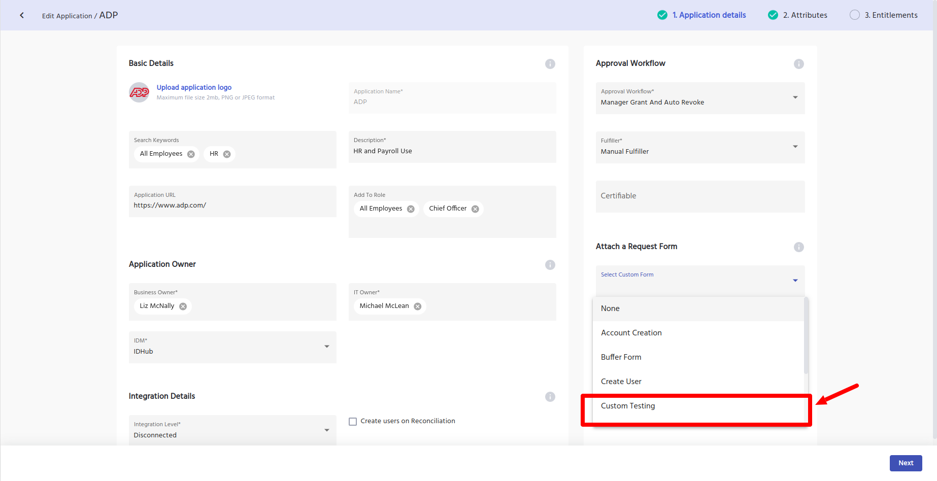 - You can also attach the custom form to an existing application (which is already on-boarded)