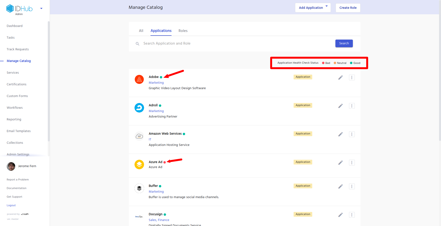 IDHub provides a health checkup status for each application that you onboard into IDHub.