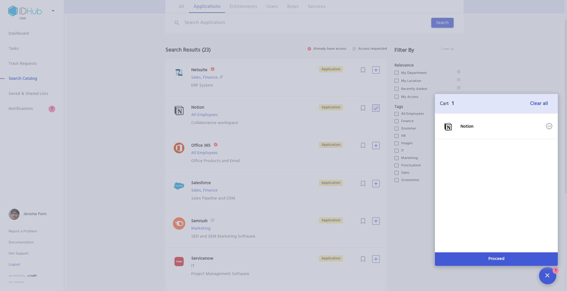 If you are requesting access to an entitlement and you do not have access to the parent application for that entitlement, then IDHub would automatically add that application to the cart.