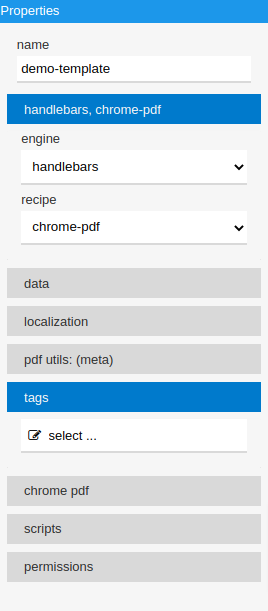 If the recipe is chrome-pdf, then you can click on the property pdf-util as is shown below: